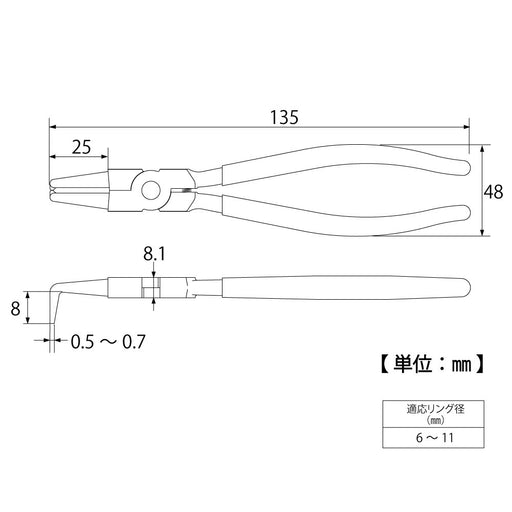 Top Kogyo Snap Ring Pliers for Holes 6-11mm Ultra-Thin Made in Japan