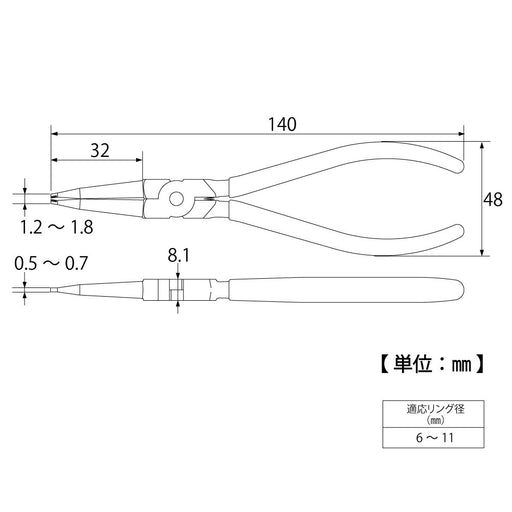 Top Kogyo Snap Ring Pliers for Holes 6-11Mm Straight Claws Ultra-Thin