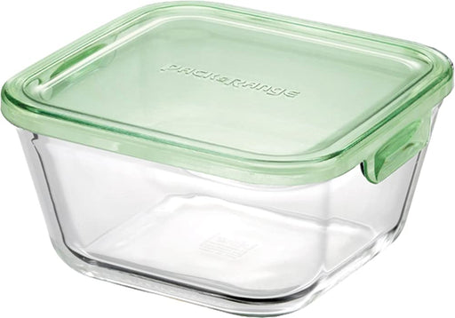 Iwaki 1.0L Heat-Resistant Glass Storage Container Green Square Deep